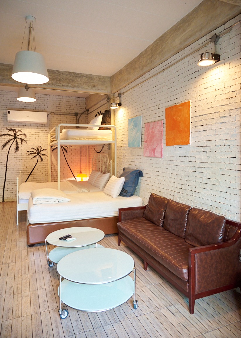 ห้องสีเทา 2 เป็นห้องเดอลุกซ์ขนาด 40 ตรม. อยู่บนชั้น1 ของอาคาร วิลล่า2 ห้องพักวิวสระว่ายน้ำ และสวนต้นไม้ ออกแบบมาอย่างสมบูรณ์แบบเพื่อให้ทุกคนในห้องมีความสุขด้วยกัน ห้องพักตกแต่งด้วย Loft Style โทนสีน้ำตาล ครีม ขาว พื้นปูด้วยกระเบื้องลายไม้ ผนังด้านหนึ่งก่อด้วยอิฐมอญทาสีขาว ลักษณะการตกแต่งภายใน   โดยจัดวางพื้นที่แบบอิสระปลอดโปร่ง และยังให้ความสำคัญกับการจัดวางสิ่งของภายในตัวอาคาร ด้วยเฟอร์นิเจอร์ต่าง ๆ เพื่อให้แสดงสเน่ห์ของสไตล์ Mix & Match ออกมาได้อย่างชัดเจนที่สุด ออกแบบมาเพื่อการพักผ่อน  ห้องนี้สามารถรองรับได้ 4 ท่าน พร้อมเตียงคิงไซส์ 1 เตียง และเตียง 2 ชั้น 3.5 ฟุต 1 เตียง ห้องพักกว้าง สะอาด เพดานโปร่ง โล่งสบาย.