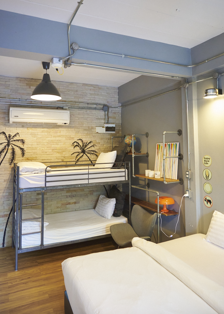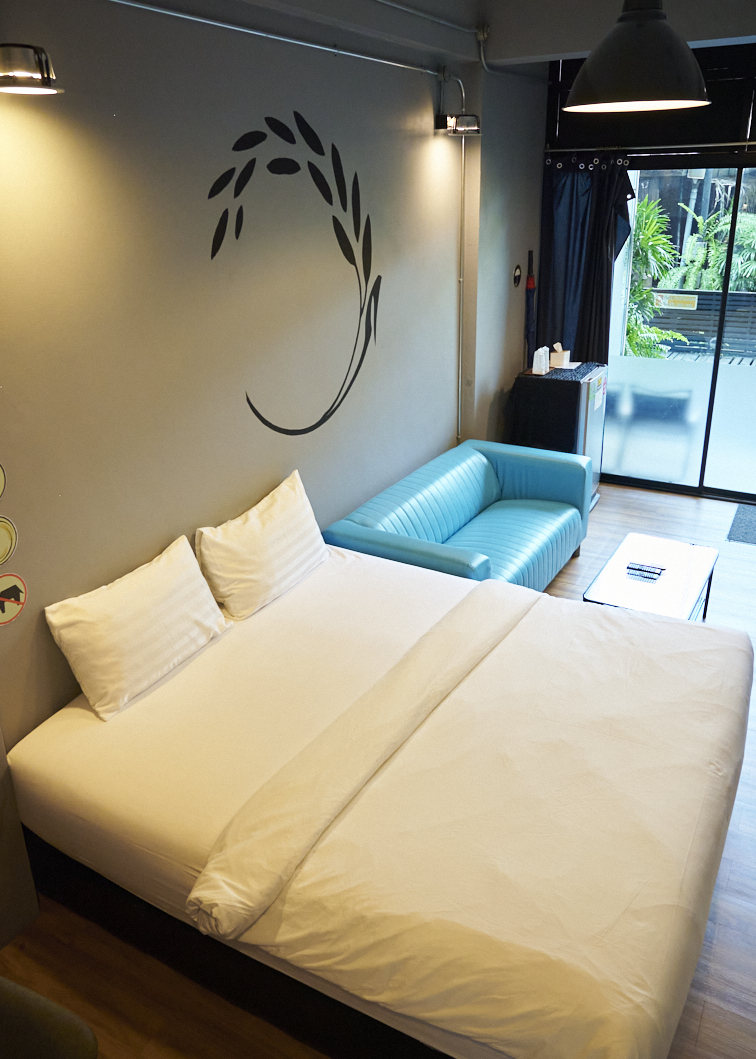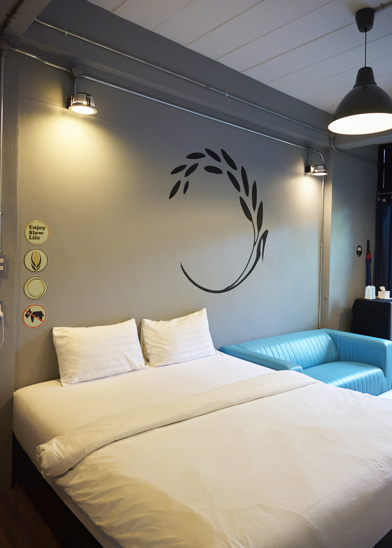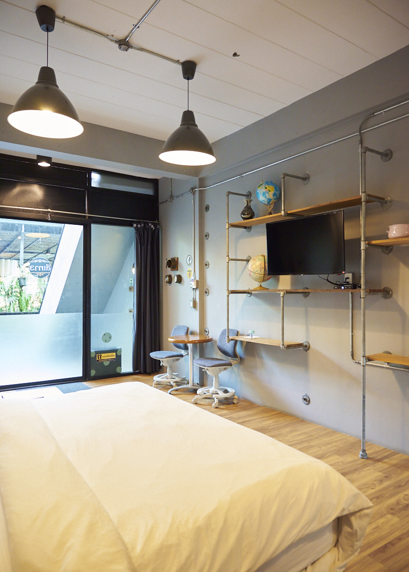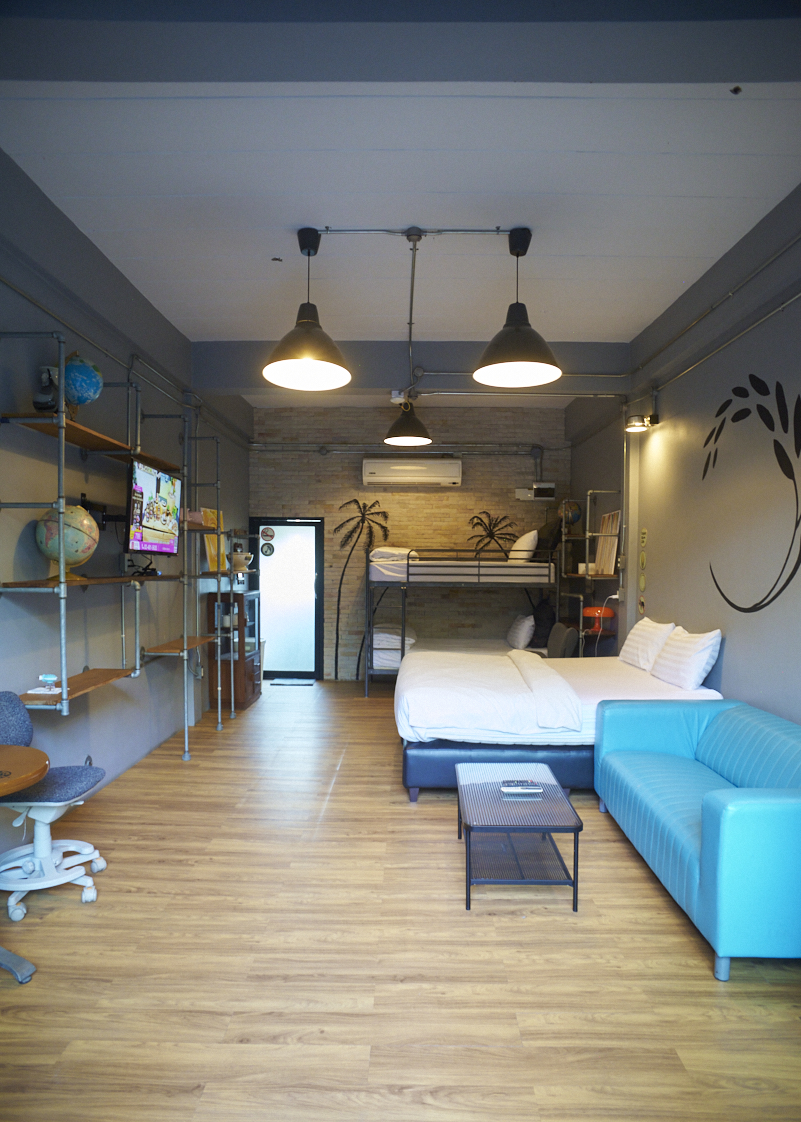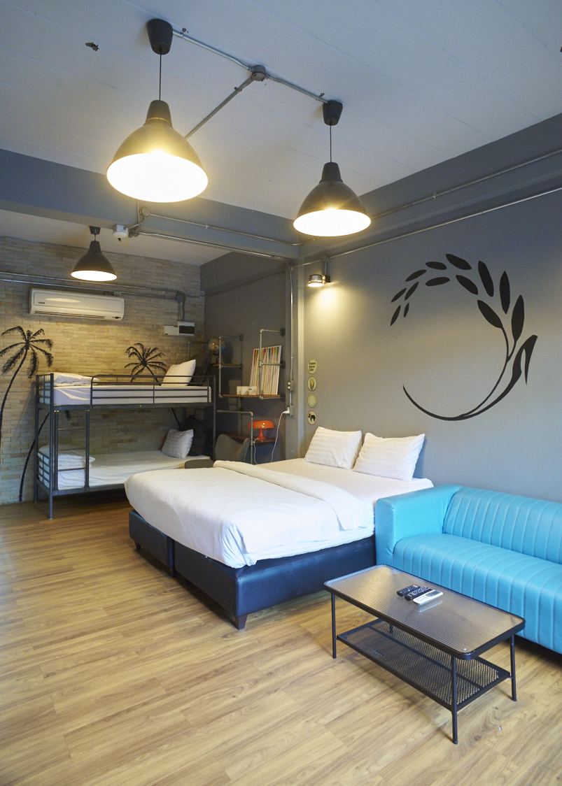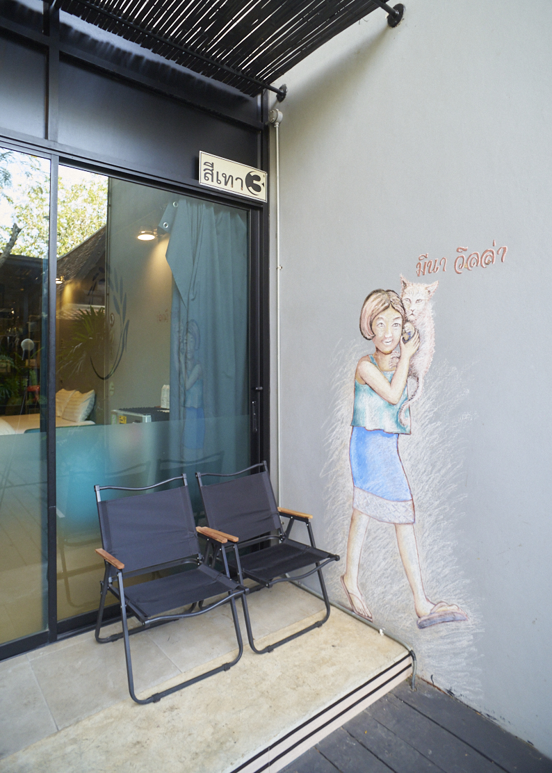 ห้องสีเทา 3 เป็นห้องเดอลุกซ์ขนาด 40 ตรม. อยู่บนชั้น1 ของอาคาร วิลล่า2 ห้องพักวิวสระว่ายน้ำ และสวนต้นไม้ ออกแบบมาอย่างสมบูรณ์แบบเพื่อให้ทุกคนในห้องมีความสุขด้วยกัน ห้องพักตกแต่งด้วย Loft Style โทนสีน้ำตาล เทา ขาว พื้นปูด้วยกระเบื้องลายหินสีครีม ลักษณะการตกแต่งภายใน   โดยจัดวางพื้นที่แบบอิสระปลอดโปร่ง และยังให้ความสำคัญกับการจัดวางสิ่งของภายในตัวอาคาร ด้วยเฟอร์นิเจอร์ต่าง ๆ เพื่อให้แสดงสเน่ห์ของสไตล์ Mix & Match ออกมาได้อย่างชัดเจนที่สุด ออกแบบมาเพื่อการพักผ่อน  ห้องนี้สามารถรองรับได้ 4 ท่าน พร้อมเตียงคิงไซส์  1 เตียง และเตียง 2 ชั้น 3.5 ฟุต 1 เตียง  ห้องพักกว้าง สะอาด เพดานโปร่ง โล่งสบาย.